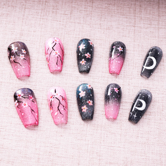 Midnight Sakura Glitter Press on Nail
